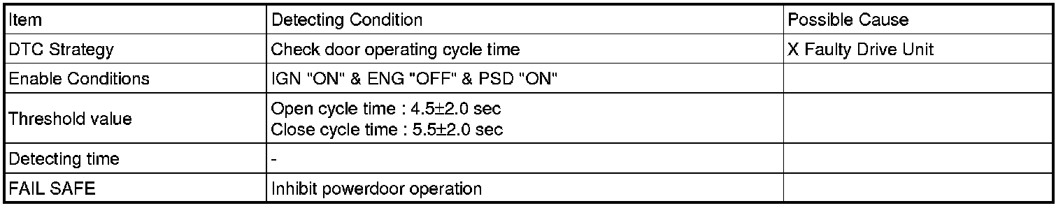 The ECM sets DTC B1645 if the door doesn't move to intended position within specificated time at power mode operation