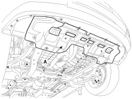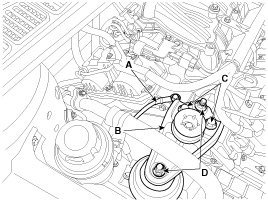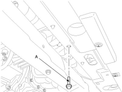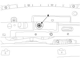 25. Support the sub frame (A) with a floor jack, and then remove the sub frame mounting bolts.