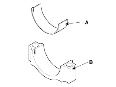 (2) Install the bearings (A) in the connecting rod and connecting rod cap (B).
