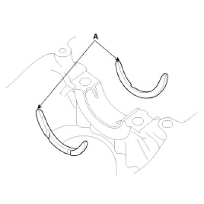 Install the 2 thrust bearings (A) under the No.3 journal position of the cylinder block with the oil grooves facing outward.