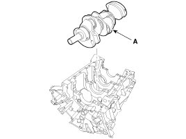 21. Lift the crankshaft (A) out of engine, being careful not to damage journals.