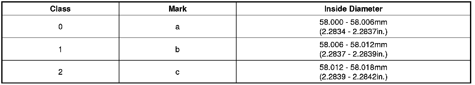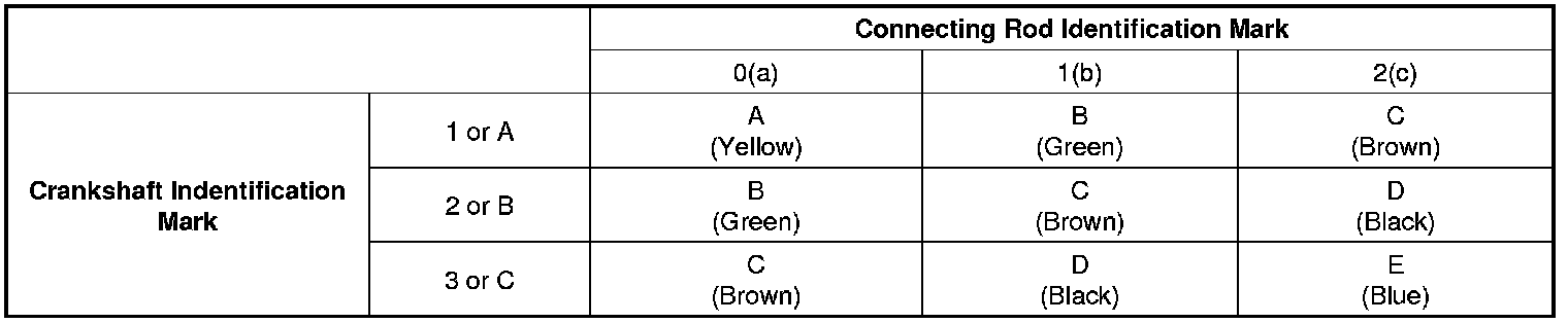 (6) If the plastigage measures too wide or too narrow, remove the upper half of the bearing, install a new, complete bearing with the same color mark (select the color as shown in the next column), and recheck the clearance.
