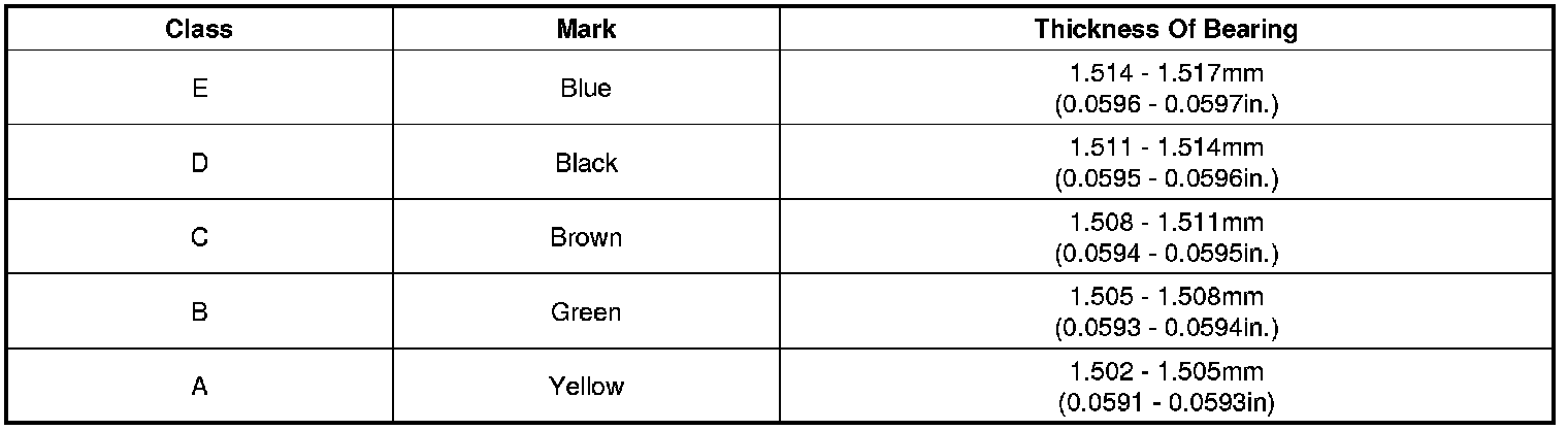 (10) If the plastigage shows the clearance is still incorrect, try the next larger or smaller bearing (the color listed above or below that one), and check clearance again.