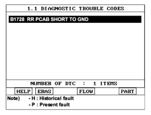 1) Displaying nothing (no DTC) or DTC with label "H"(historical) shows that Fault is intermittent caused by poor contact in the part's and/or SRSCM connector or was repaired and SRSCM memory was not cleared.