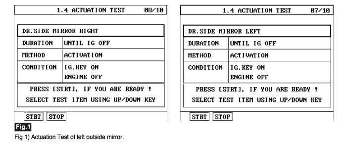 3. Select 'ACTUATION TEST' mode on scantool and press [F1] to start
