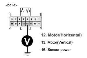 3. Measure voltage value between terminal "12" of outside mirror and chassis ground. While operating outside mirror switch