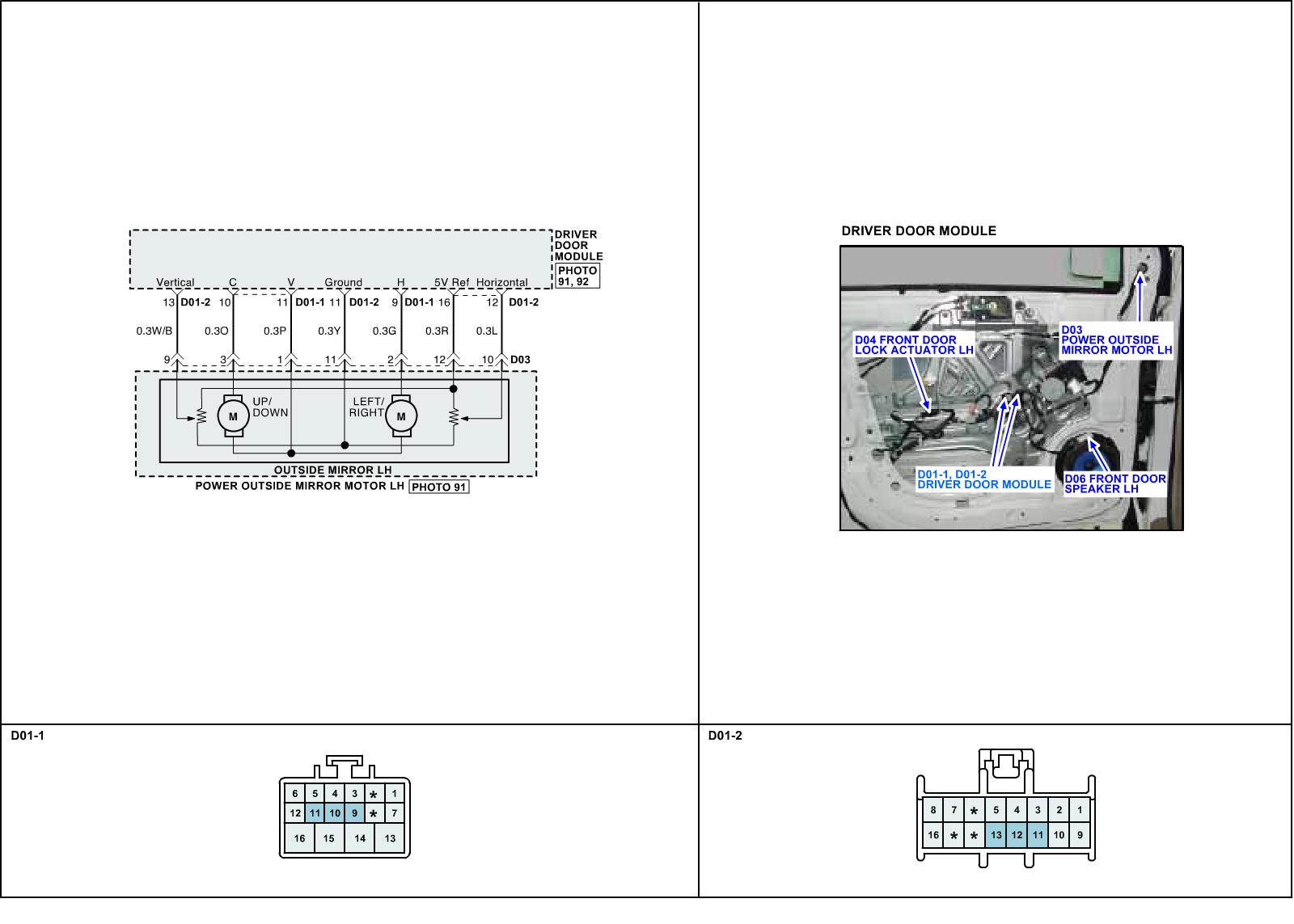 DDM is a node of CAN communication system which consists of IPM. FAM, RAM, ADM, IMS. Main function of DDM is lock/unlock of door and window, adjusting position and fold/unfold of outside mirror. Outside mirror module consists of motor and position sensor. According to Outside mirror Switch signal, Outside mirror motor adjusts position of mirror and position sensor delivers result to DDM by voltage value.