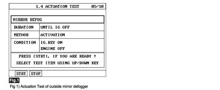 3. Select 'ACTUATION TEST' mode on scantool and press [F1] to start
