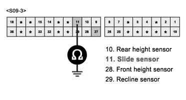 2. Measure resistance between terminal "11" of IMS and terminal "3" of power seat slide sensor.