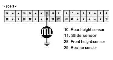 1) Substitute with a known-good power seat slide sensor and check for proper operation. If the problem is corrected, replace power seat slide sensor and then go to "Verification of Vehicle Repair" procedure.