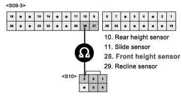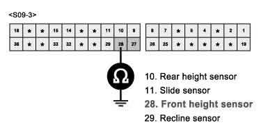 2. Measure resistance between terminal "28" of IMS and terminal "3" of power seat slide sensor.