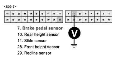 1) Substitute with a known-good power seat slide sensor and check for proper operation. If the problem is corrected, replace power seat slide sensor and then go to "Verification of Vehicle Repair" procedure.