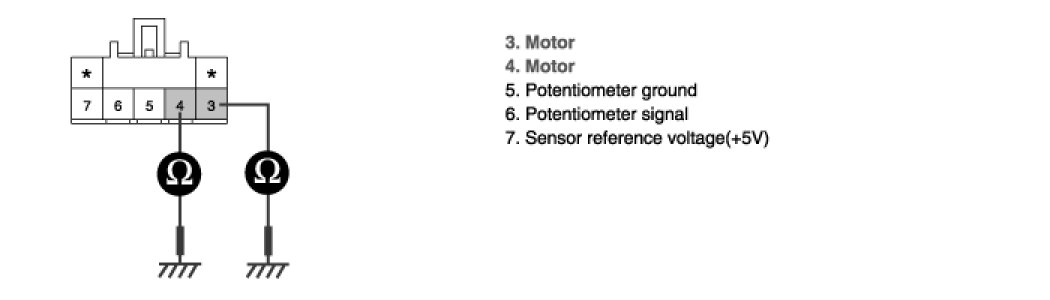 (3) Verify that the temperature actuator operates to the hot position when connecting 12V to the terminal "3" and grounding terminal "4".