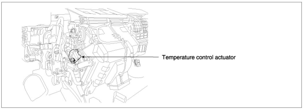 Temperature control actuator located at heater unit, regulates the temperature by the procedure as follows. Signal from control unit adjusts position of temp. door by operating temp. motor and then temperature will be regulated by the hot/cold air ratio decided by position of temp. door.