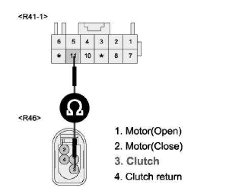 2. Measure resistance between terminal "R41-1-11" of PTG and terminal "R46-3" of door clutch.