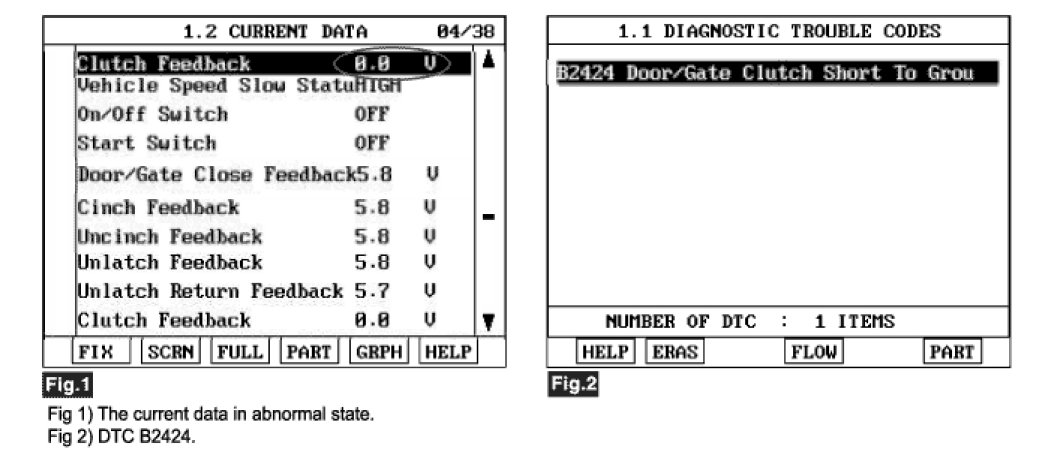2. Ignition "ON" & engine "OFF" & PTG "ON" & Door clutch "ON"