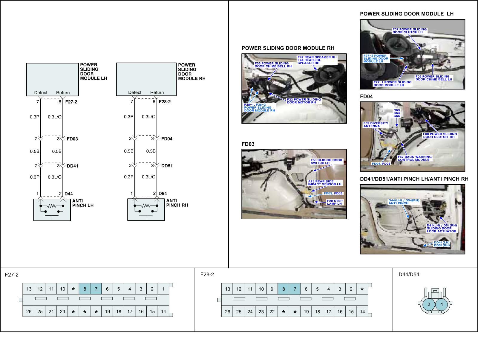 Power sliding door (here in after PSD) is the system which moves sliding door of vehicle by electronic motor so that user can open or close door with less force than required on manual operation. PSD consists of drive unit, center roller/rail, handle and various kinds of switch (anti pinch, detent, latch), anti pinch switch is secondary protection equipment that prevents nipping in the door and has steel point of contact in rubber strip. When an obstacle has been detected during a power closing operation, the PSD shall reverse direction and move to the full open position (When an obstacle is detected during a power opening operation, the PSD shall stop)