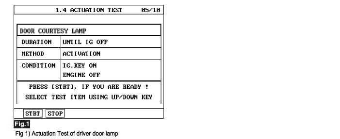 3. Select 'ACTUATION TEST' mode on scantool and press [F1] to start