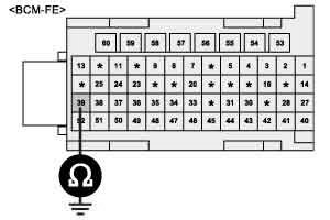 3. Measure the resistance between Right turn signal lamp power circuit of FAM (BCM-FE-39) and chassis ground.