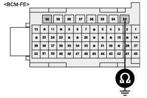 3. Measure the resistance between head lamp high power circuit of FAM (BCM-FE-53) and chassis ground.