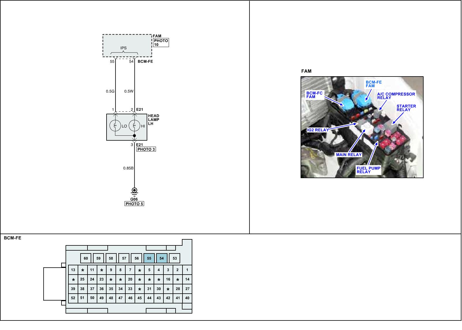 FAM is a part of BCM with DDM, ADM, IPM, RAM, IMS and Cluster module. Each part of BCM is connected to one another through CAN communication line for efficient communication. Those modules control front/rear, driver/passenger seat, cluster with electrical signal and they share information with other modules. FAM (Front Area Module) set up at engine room controls various lamps (fog lamp, head lamp, stop lamp, turn signal lamp), wiper and performs system error checking as well. Received multi function switch head lamp signal from IPM through CAN line, FAM controls head lamp with integrated IPS. IPS is a semi-conductor element which performs roles of fuse and relay. In addition to those roles, it performs sensing circuit error, circuit protection.