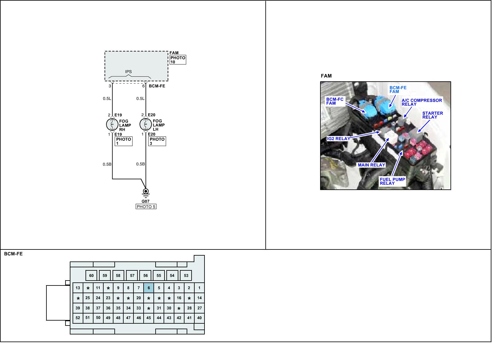 FAM is a part of BCM with DDM, ADM, IPM, RAM, IMS and Cluster module. Each part of BCM is connected to one another through CAN communication line for efficient communication. Those modules control front/rear, driver/passenger seat, cluster with electrical signal and they share information with other modules. FAM (Front Area Module) set up at engine room controls various lamps (fog lamp, head lamp, stop lamp, turn signal lamp), wiper and performs system error checking as well. Received multi function switch head lamp signal from IPM through CAN line, FAM controls head lamp with integrated IPS. IPS is a semi-conductor element which performs roles of fuse and relay. In addition to those roles, it performs sensing circuit error, circuit protection.