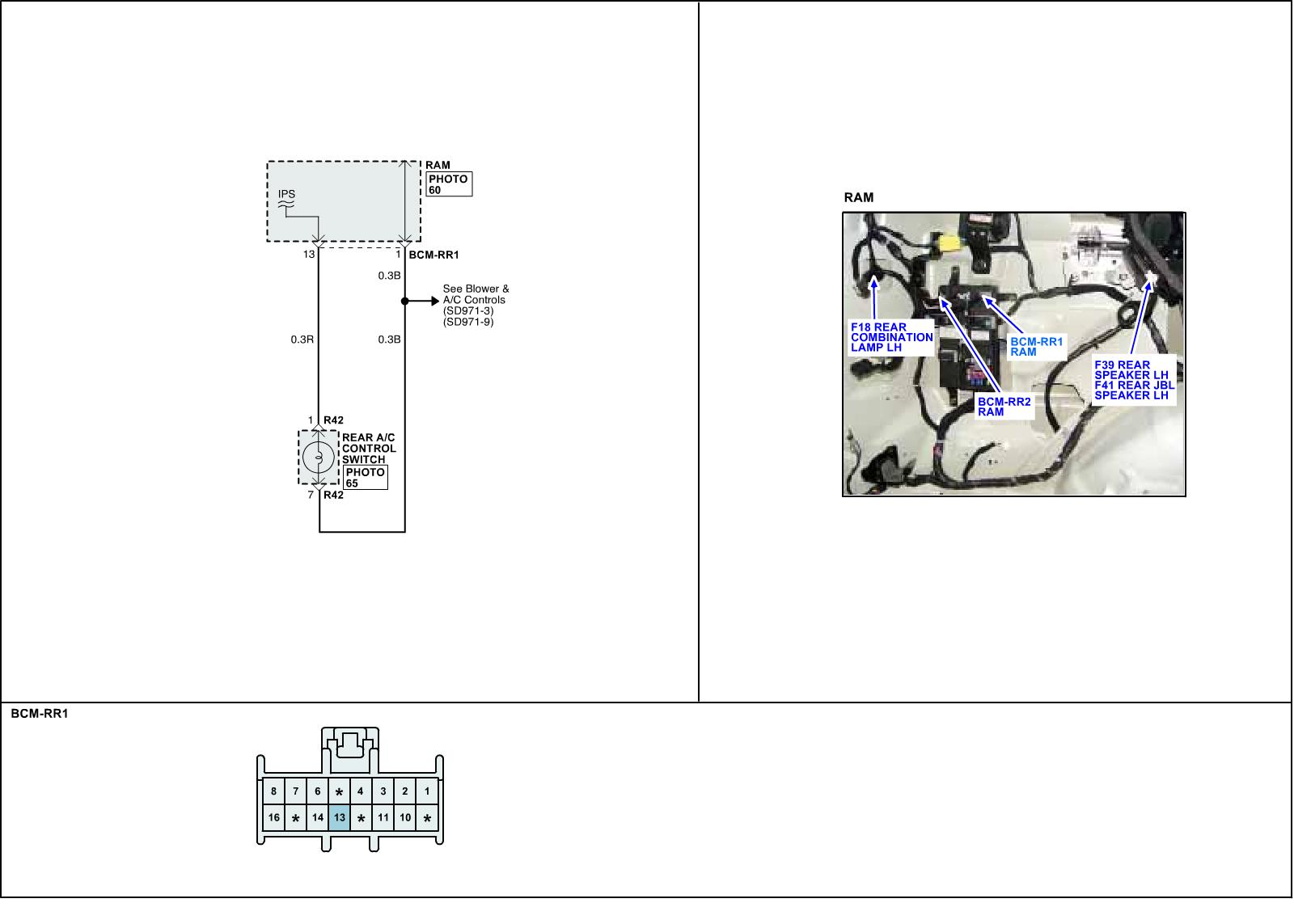 RAM is a component of BCM that consists of DDM, ADM, IPM, FAM, IMS and cluster module. Each part of BCM is connected to one another through CAN communication line for efficient communication. Those modules control front/rear, driver/passenger seat, cluster with electrical signal and they share information with other modules. RAM (Rear Area Module) set up at rear-left of passenger room controls various rear lamps (tail lamp, rear turn signal lamp, backup lamp, stop lamp, cabin lamp), window (sliding door power window, quarter glass, rear defogger), rear wiper and oil cap door. Received multi function switch rear lamp signal from IPM through CAN line, RAM controls Rear blower switch illumination lamp. Besides, RAM controls power sliding door switch (RH, LH), quarter glass switch (LH/RH), rear aircon control switch.