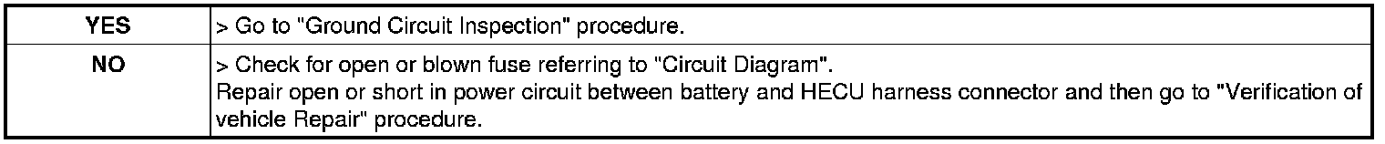 3. Measure resistance between ground terminal of the HECU harness connector and chassis ground.