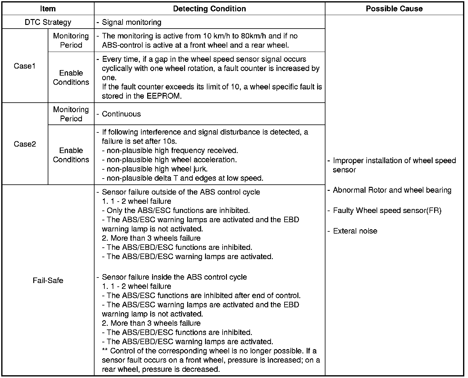 The ABS ECU monitors the wheel speed sensor signal continuously.