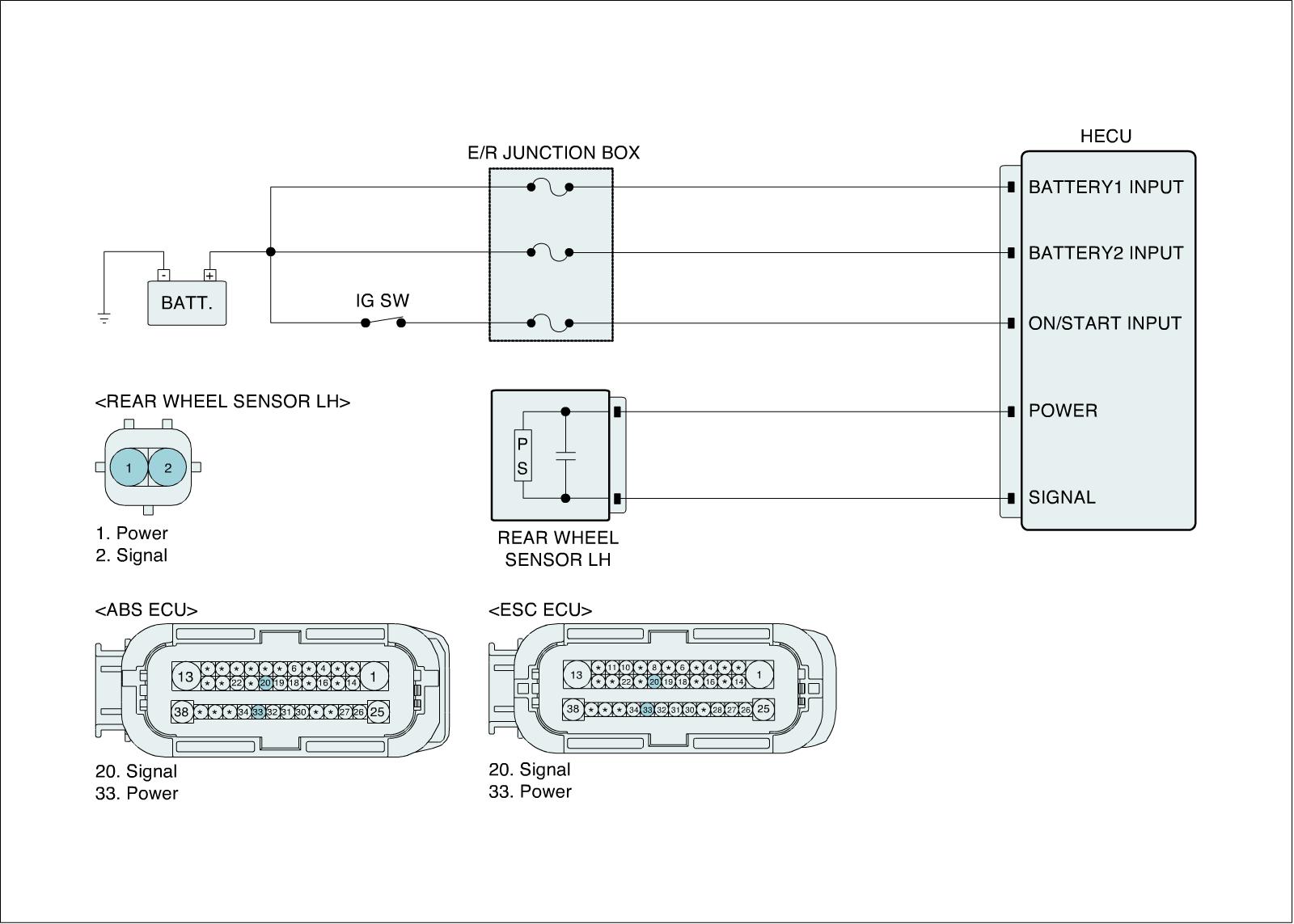 The ABS ECU monitors the wheel speed sensor signal continuously.