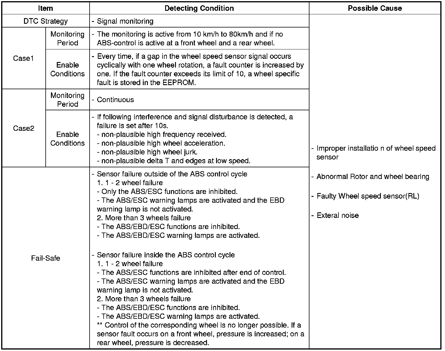 This code is set when an abnormal signal due to air gap problem or an abnormal speed change ratio are detected at the vehicle speed between 10 km/h to 80 km/h.