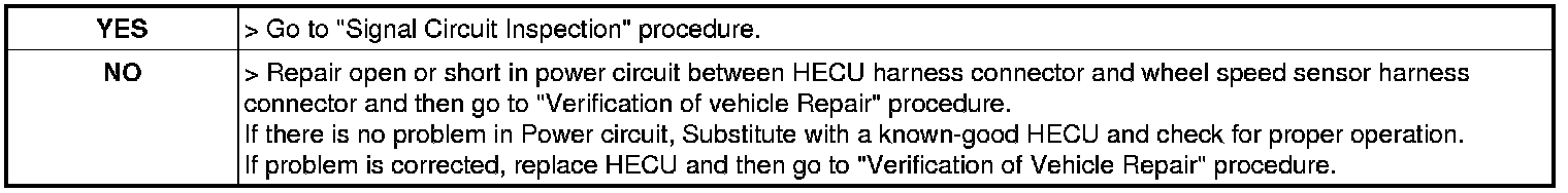 2. Measure voltage between power terminal of the wheel speed sensor harness connector and chassis ground.