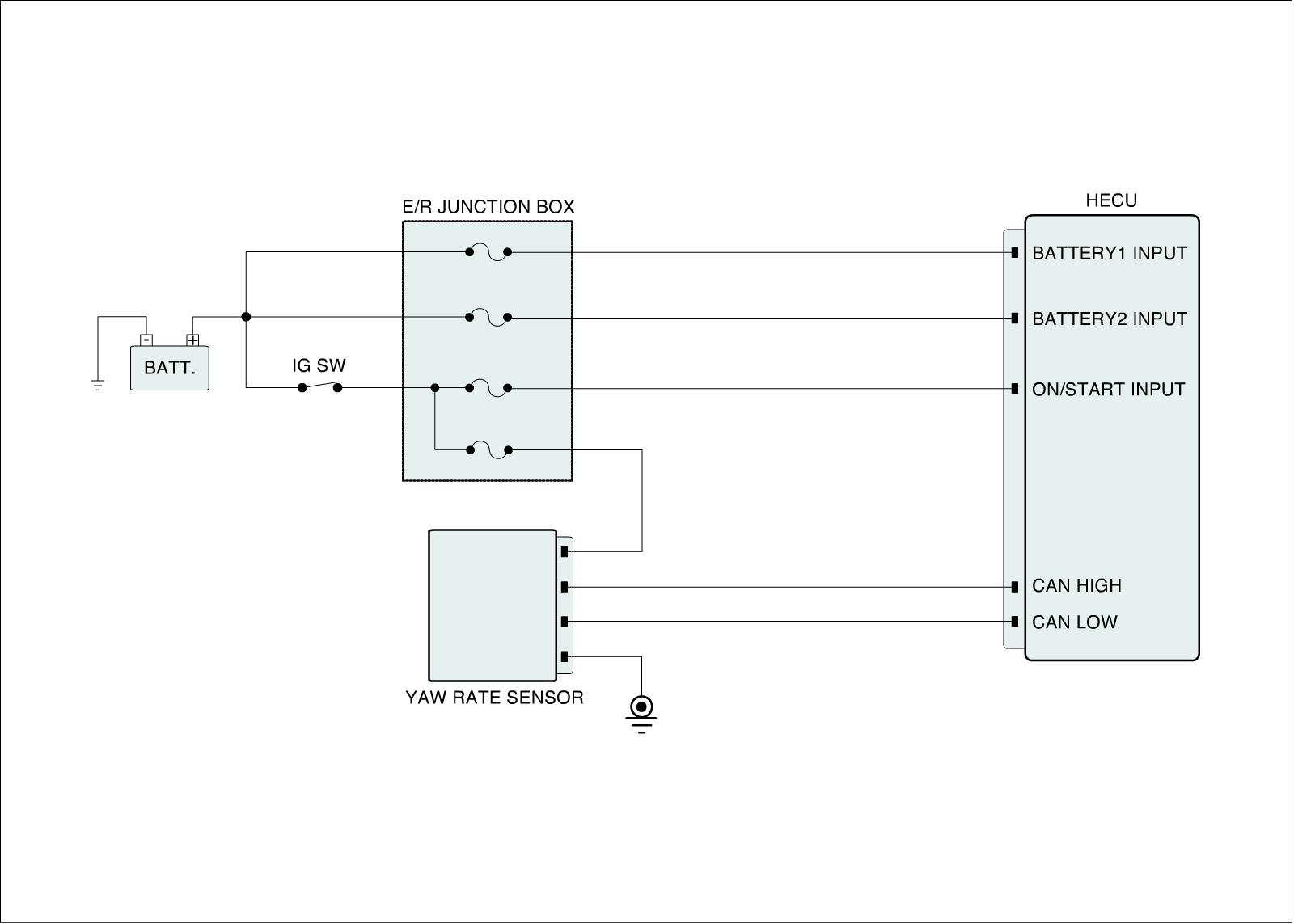 The yaw-rate sensor detects acceleration of the vehicle around its vertical axis, while the G sensor detects lateral acceleration of the vehicle.