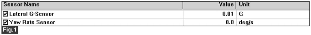 4. Monitor the "Lateral Acceleration Sensor, Yaw Rate Sensor" parameter on the Scantool.