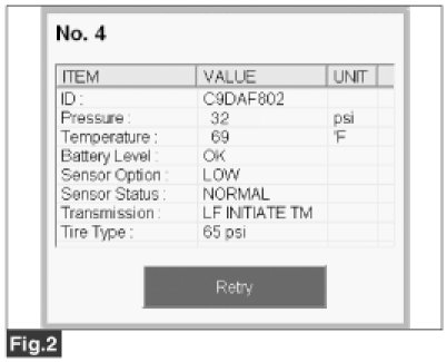 Fig.1) Data displayed by TPMS ECU