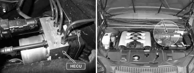 The HECU send requirement data, such as Torque reduction, the number of fuel cut cylinders, and ESC control requests, to the Engine PCM (ECM & TCM) through CAN bus line.