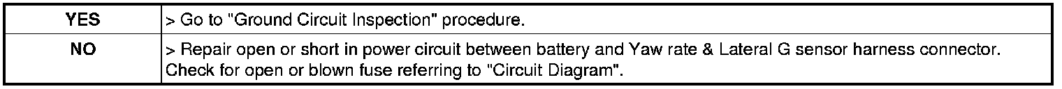 3. Measure voltage between power supply terminal of the yaw rate & lateral G sensor harness connector and chassis ground.
