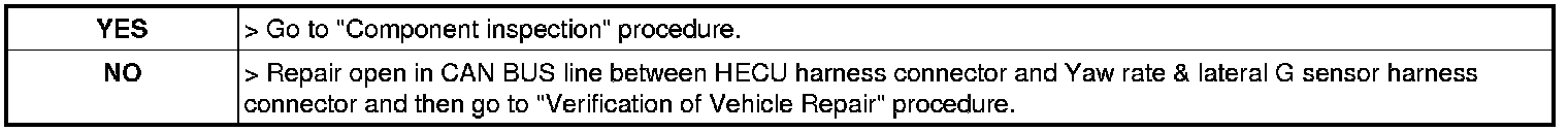 3. Measure resistance between CAN HIGH (LOW) terminal of the HECU harness connector and CAN HIGH (LOW) terminal of the Yaw rate & lateral G sensor harness connector.