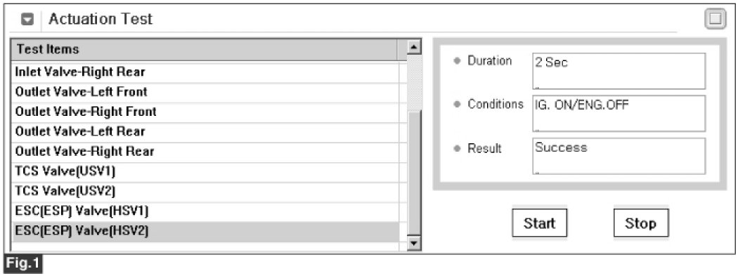 4. Inspect operating status of ESP (HSV) valve #2 with Actuation Test.