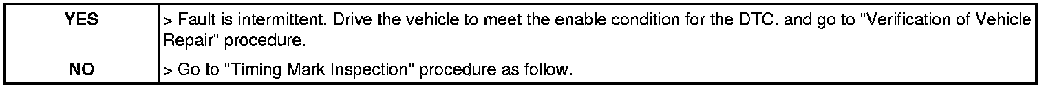 1. IG "OFF" and check the timing mark is correctly aligned.