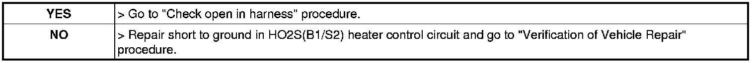 2. Measure resistance between control terminal of HO2S (B1/S2) heater harness connector and heater control terminal of PCM harness connector.