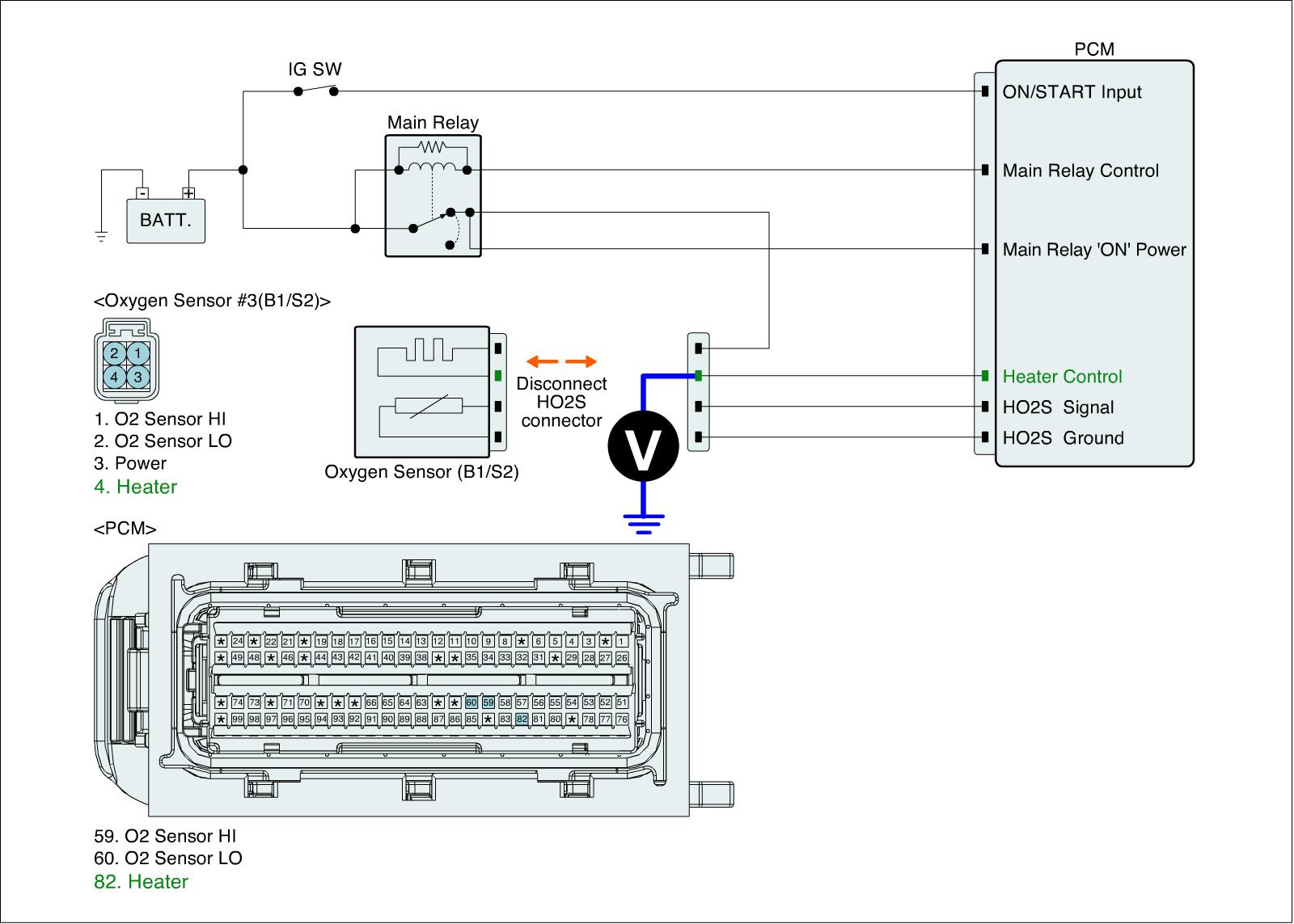 1. IG "OFF" & Disconnect HO2S (B1/S2) connector.