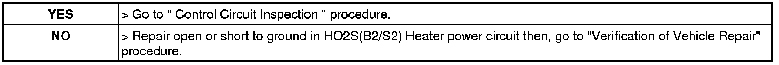 2. Measure resistance between control terminal of HO2S (B2/S2) heater harness connector and heater control terminal of PCM harness connector.