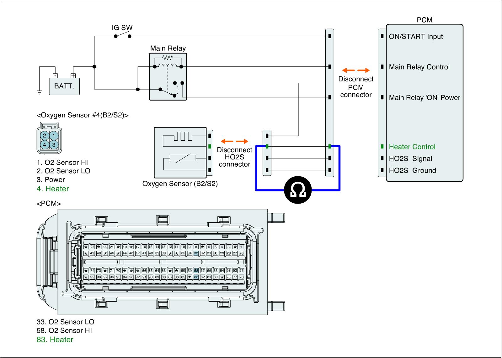 1. IG "OFF" and disconnect HO2S (B2/S2) and PCM connector.