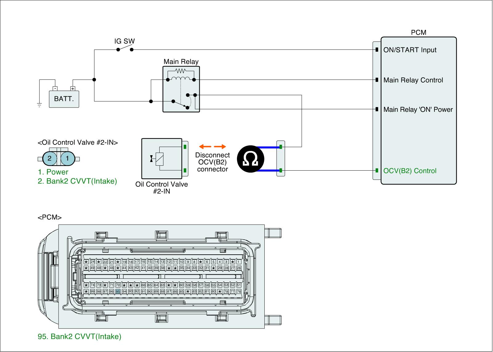 2. Measure resistance between power and control terminals of OCV harness connector.