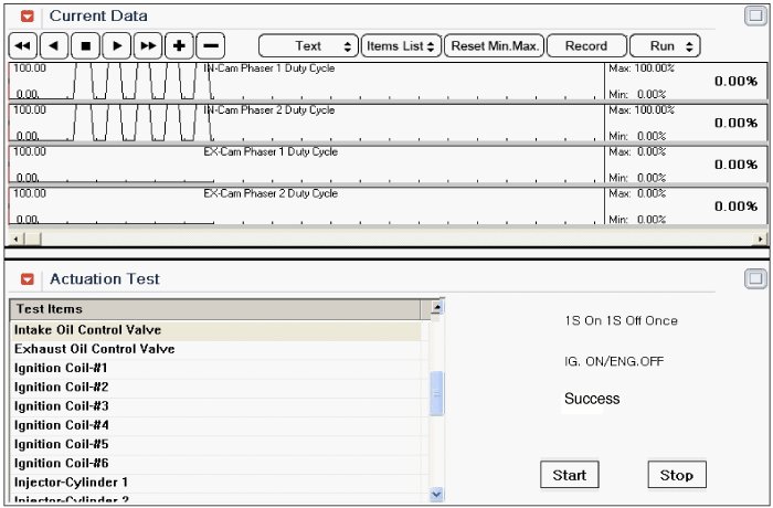 2. Select "OIL CONTROL VALVE" on the Actuation Test.