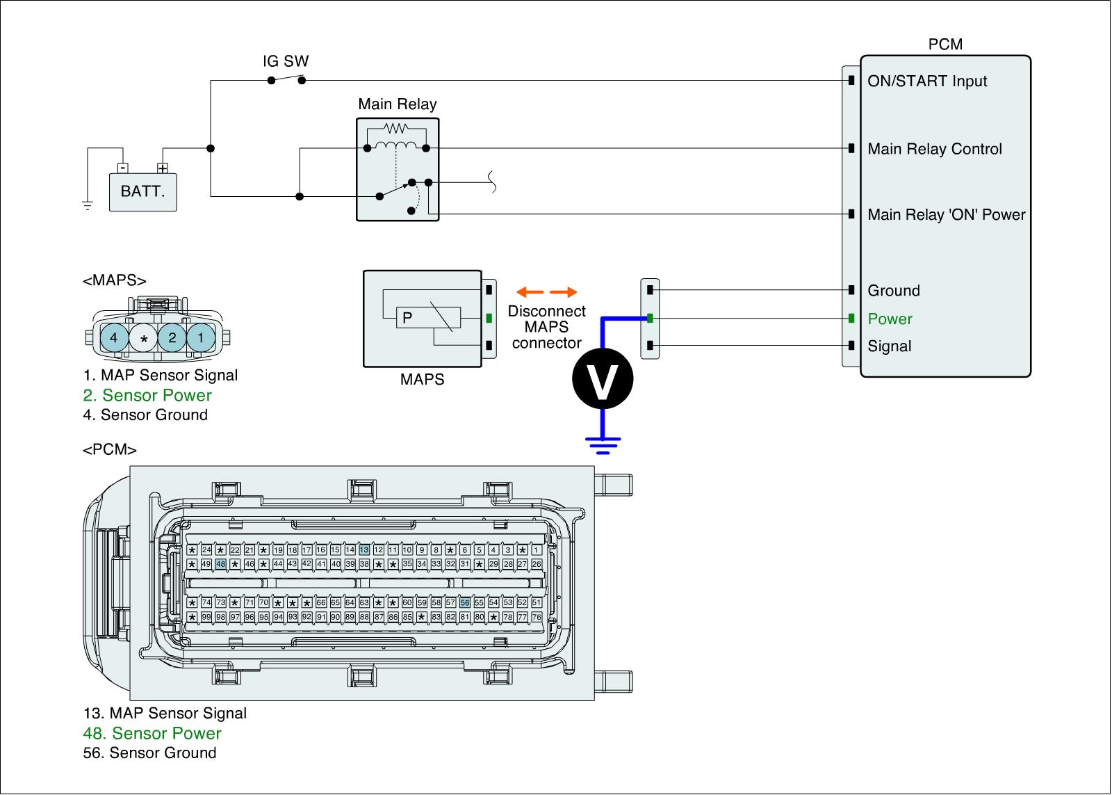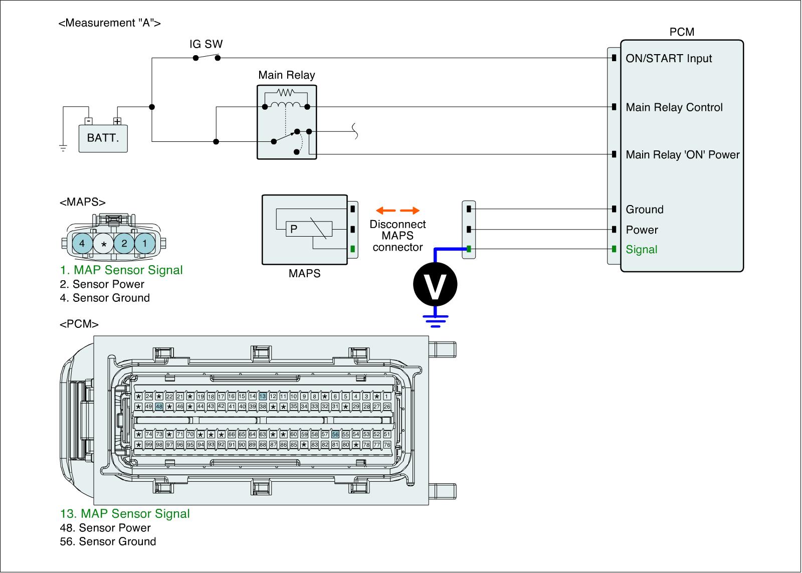 1. IG "OFF" and Disconnect MAPS connector.
