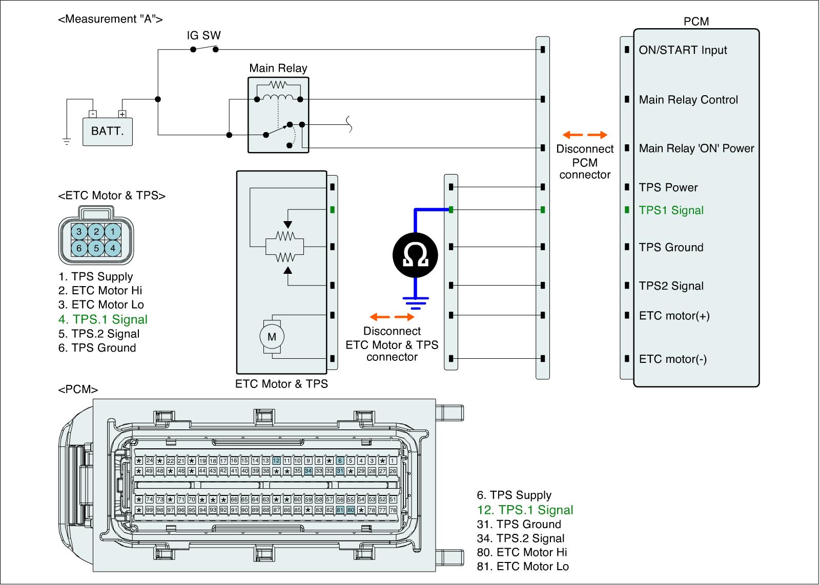 1. IG "OFF" and disconnect ETC Motor & TPS connector and PCM connector.