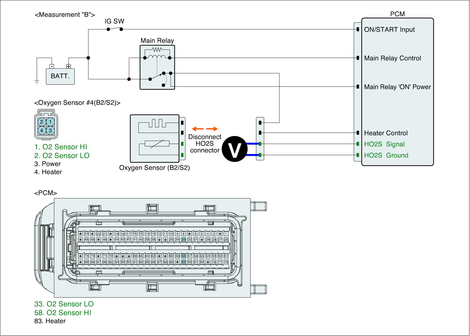 1. IG "ON" and disconnect HO2S (B2/S2) connector.