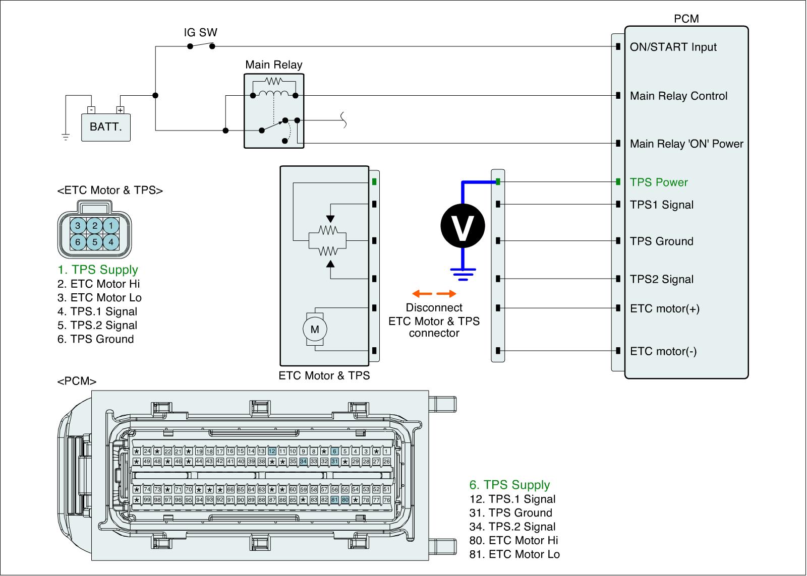 1. IG "OFF" and disconnect ETC Motor & TPS connector and PCM connector.
